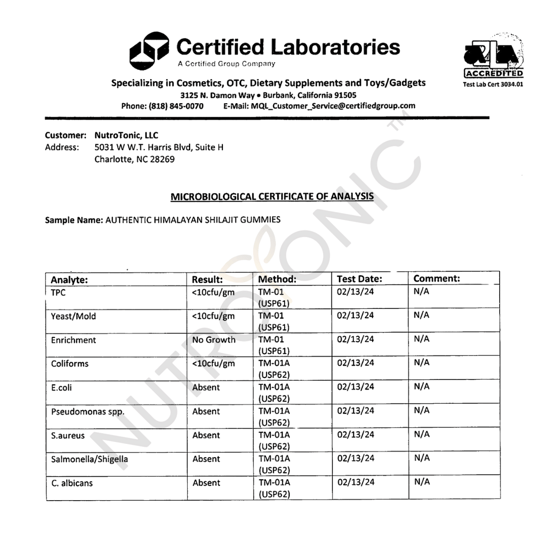 Our product has been rigorously tested for purity, potency, and safety by an independent third-party laboratory.